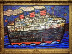 I had in mind a painting of a ship, an ocean liner. A big, bright, beautiful ocean liner, with three burning red funnels. Ocean liners are for me what bowls of fruit were to Cézanne, what hay stacks were for Monet, what clowns and judges were to Rouault, what bulls and satyrs were to Picasso. They remind me of those trips to Manhattan I took with my father as a boy and return to me my child’s sense of unmitigated joy.