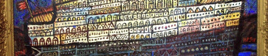 One the matrix of lines has been created, then it is time to paint. I lay in thick coats of colors, working dark to light, letting the colors spill over the black lines, knowing that the matrix can always be reinforced if need be. I try very hard to be careless. All good painting is the result of happy accidents. Anything that follows too closely to a plan is doomed to failures. Artists must take risks. The risks are where all art happens. The rest is preparation. If we are careful at all in what we do, it is by way of preparing for happy accidents.