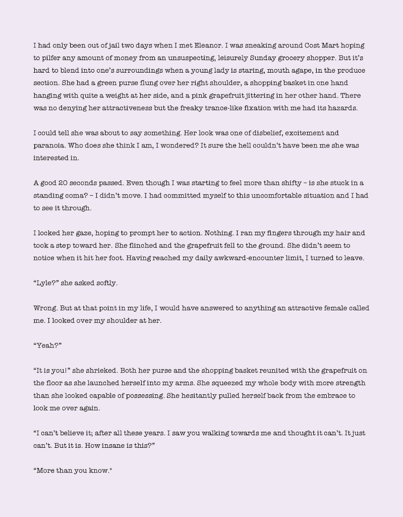 A young woman runs into an old friend in a grocery store—at least she thinks he’s an old friend. In fact the man Eleanor mistakes for “Lyle” is fresh out of prison, sent there for what crime we don’t know. But rather than correct her, “Lyle” let’s the mistake stand.